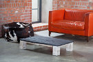 Dieser rustikale Couchtisch aus Eiche mit seinem einmaligen Charakter diente in seinem vorherigen Leben als Parkbank.