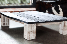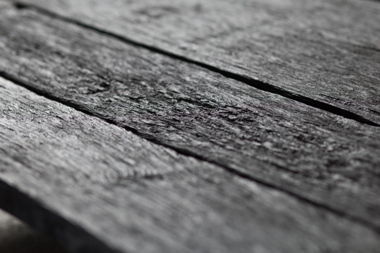 Die Balken der Tischplatte wurden mit einer mechanischen Bürste bearbeitet, gebeizt und mit Natureffektlack überzogen.